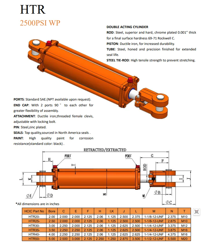 Этот сварной цилиндр со стандартной головкой HCIC имеет диаметр отверстия 4 дюйма, ход поршня 36 дюймов и шток диаметром 2 дюйма. Двойного действия Рабочие порты SAE 8 (-08) ORB(F) Максимальное рабочее давление 2500 фунтов на квадратный дюйм Крепления для вилки 1-дюймовые монтажные штифты в комплекте Глянцевая черная краска долговечна и устойчива к выцветанию.
