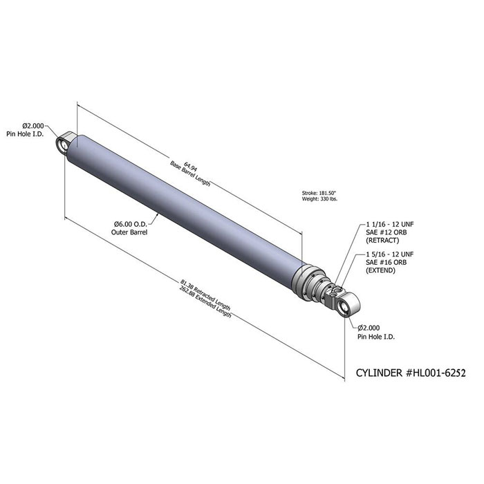 Цилиндр выброса пакета одноступенчатый Цилиндры Heil для мусоровоза: Номер позиции: HL001-6252 Описание: CYL, PAK / EJECT CYL 23YD FL / 28YD Модель: Odyssey, Freedom, Half Pack, Python, 7000 Базовый штифт: HL048-5987 Концевой штифт стержня: HL048-6234